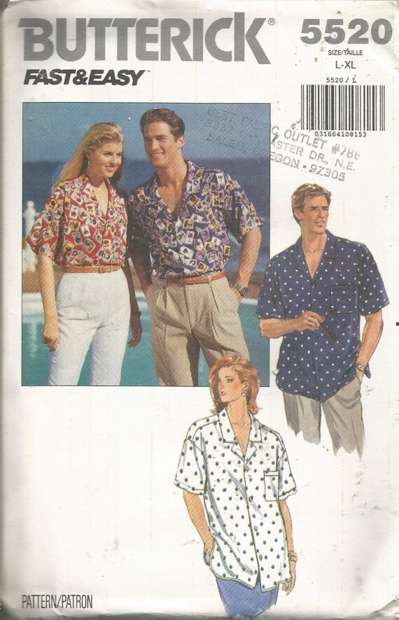Butterick Pattern 5520 Very Easy Unisex Shirt Sizes 6 22 Etsy